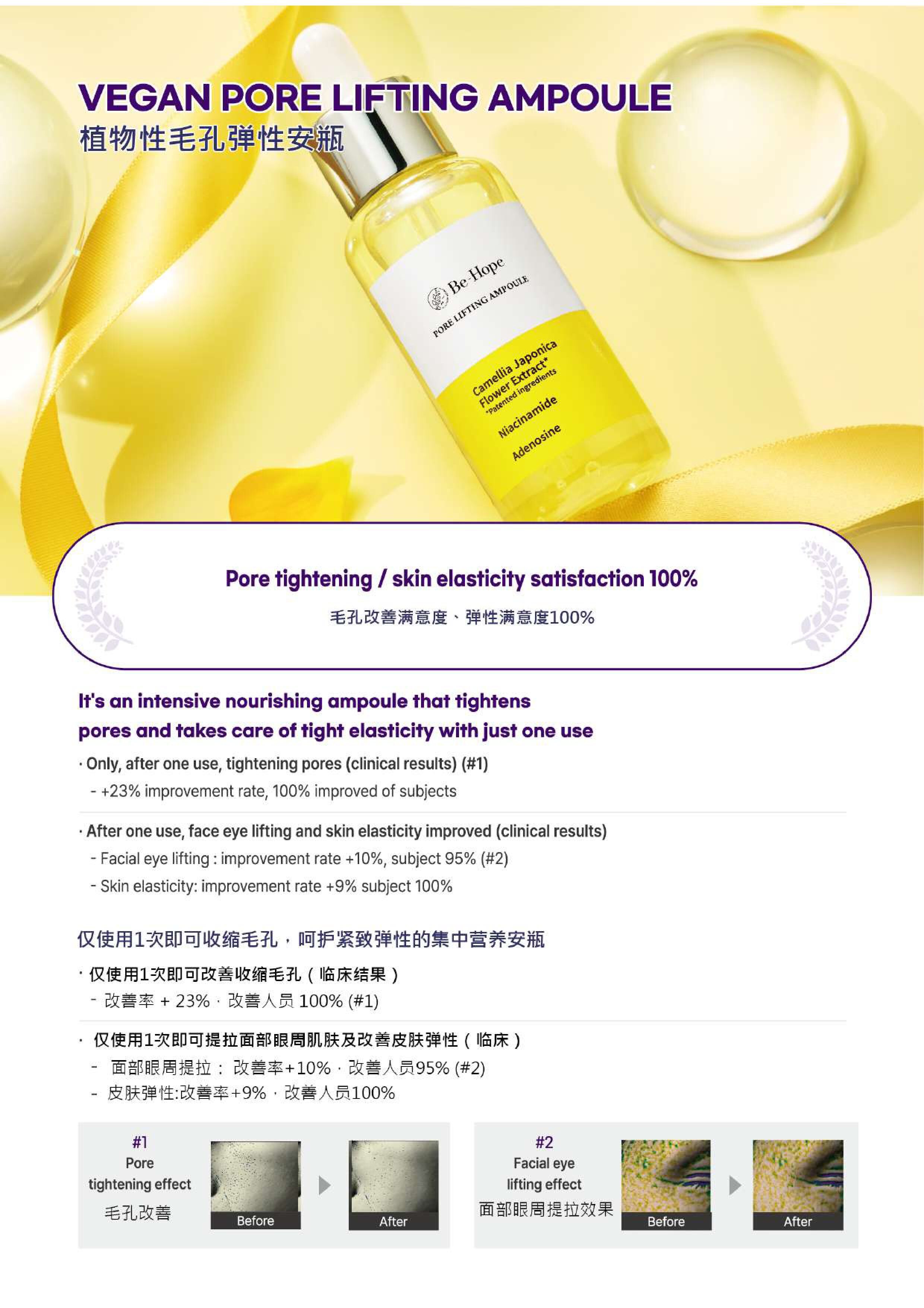 An efficient nutrient ampoule that only needs to be used once to tighten pores, improve elasticity, and provide comprehensive care for the skin. Satisfaction with pore improvement and elasticity enhancement reached 100%. (Vegan Skincare)