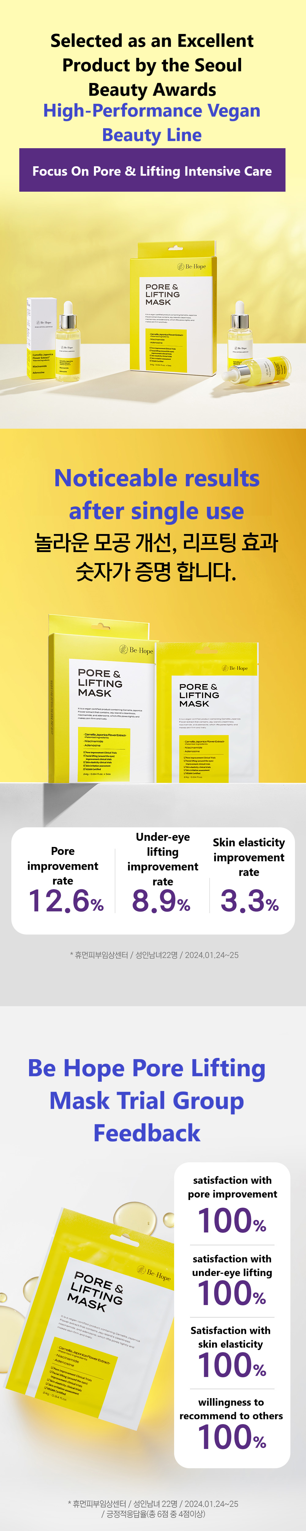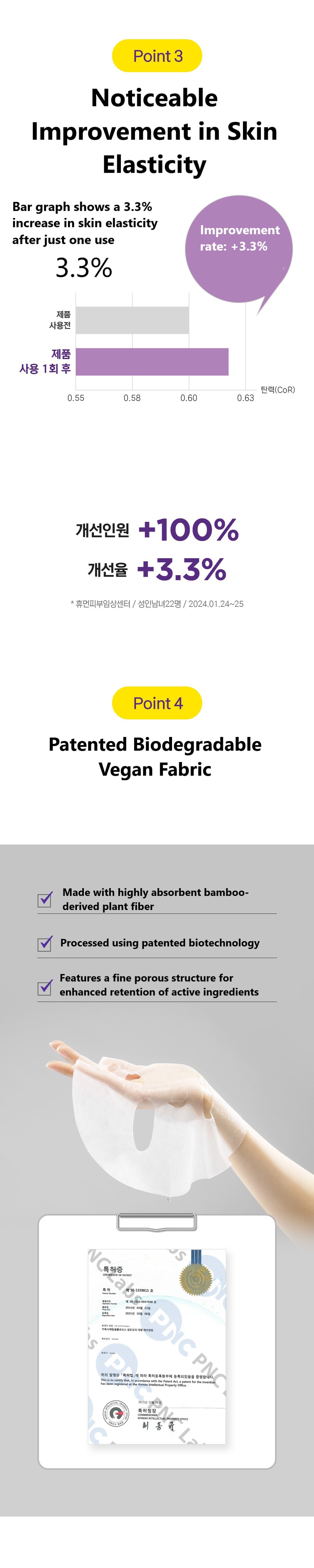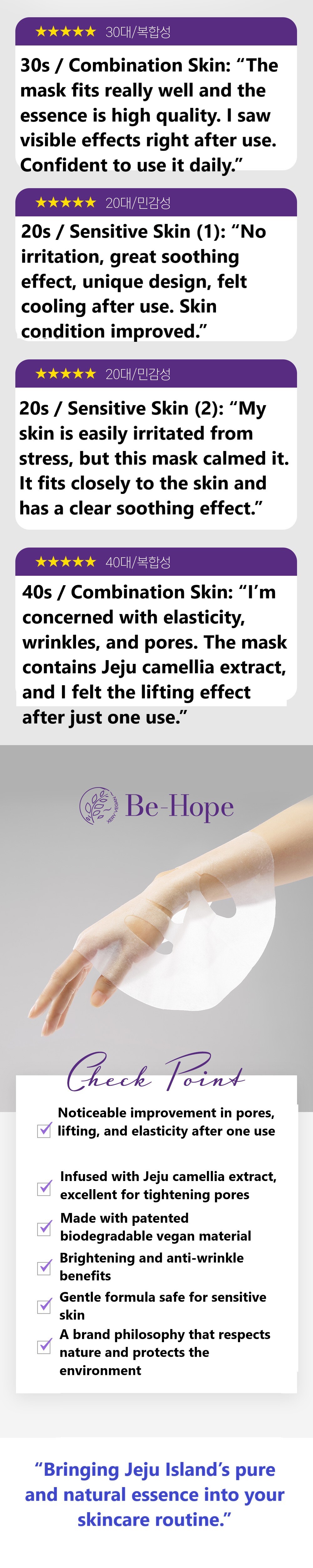 A patented fabric fully infused with ampoule delivers intensive care—just 20 minutes of use tightens pores and restores firm elasticity. An emergency treatment mask.