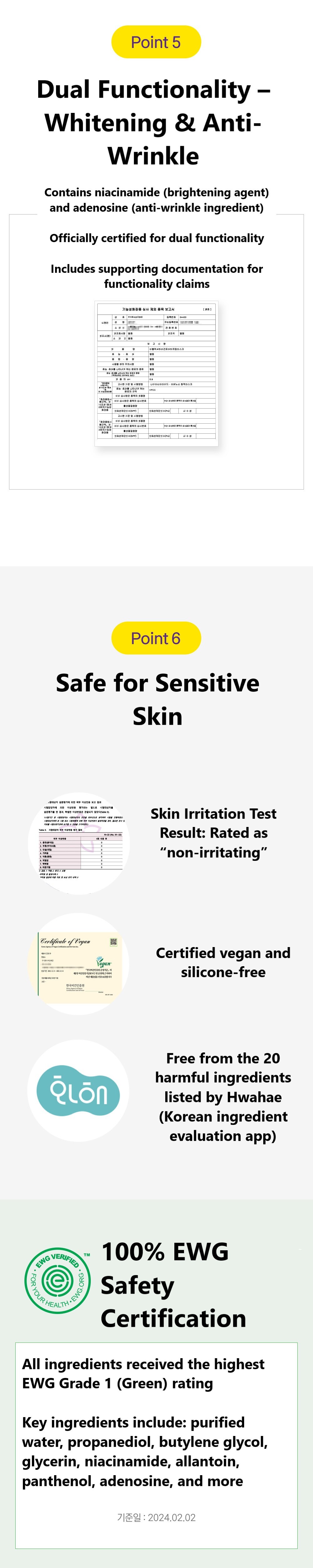 Purified Water, Propanediol, Butylene Glycol, Glycerin, Niacinamide, Allantoin, Betaine, Hydroxyacetophenone, Panthenol, Carbomer, Tromethamine, Ammonium Acryloyldimethyltaurate/VP Copolymer, Ethylhexylglycerin, Citric Acid, Adenosine, Camellia Flower Extract, Disodium EDTA, 1,2-Hexanediol, Sodium Hyaluronate, Coptis Root Extract, Hydrolyzed Hyaluronic Acid, Sodium Acetylated Hyaluronate