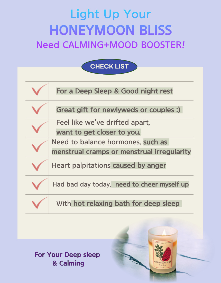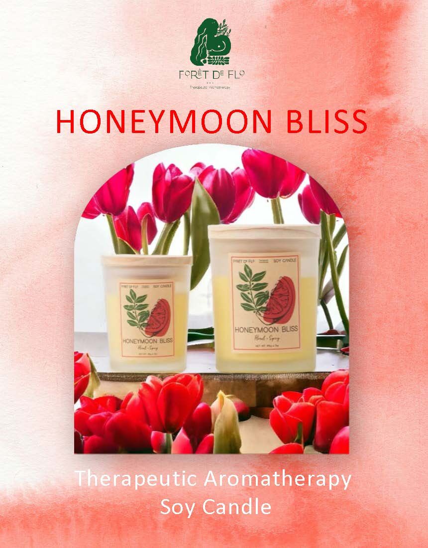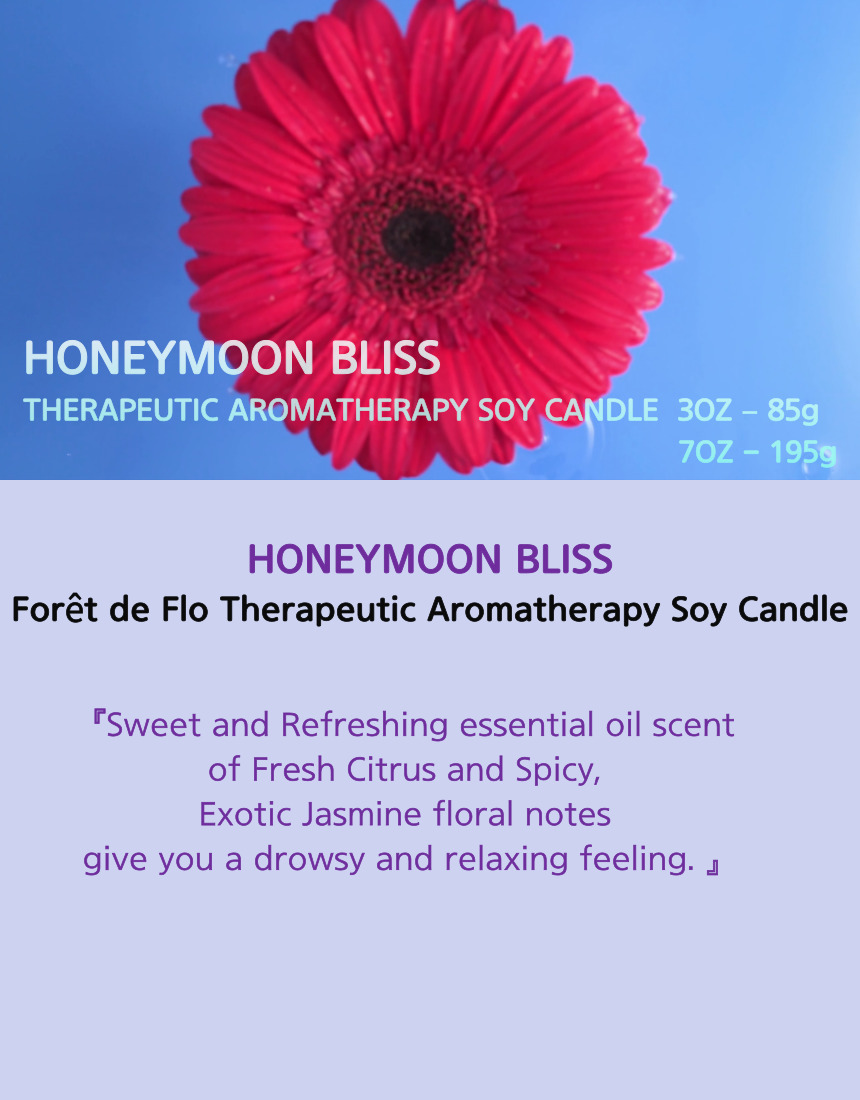Honeymoon Bliss Natural Essential Oil Hand Made Soy Candle - The Sweet and Refreshing scent of fresh Tangerines and Exotic Jasmine Floral notes give you a relaxing and comfortable rest.