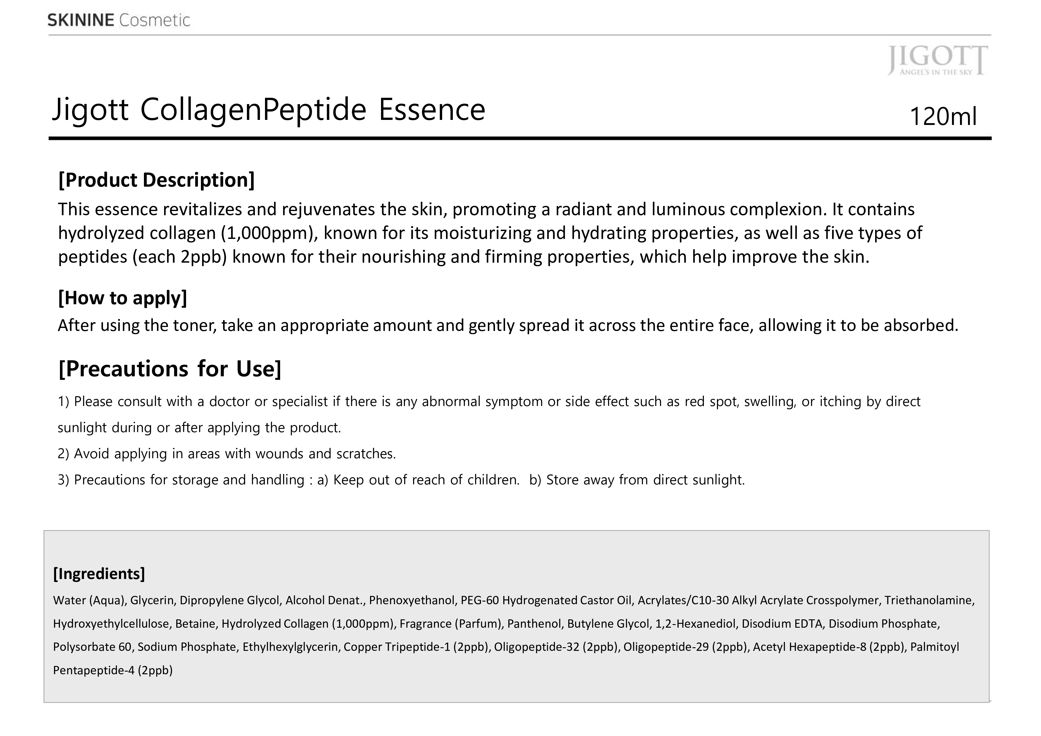 This toner helps to smooth and freshen the skin texture, providing moisture and hydration. It contains hydrolyzed collagen (1,000ppm), known for its moisturizing and hydrating properties, as well as five types of peptides (each 2ppb)