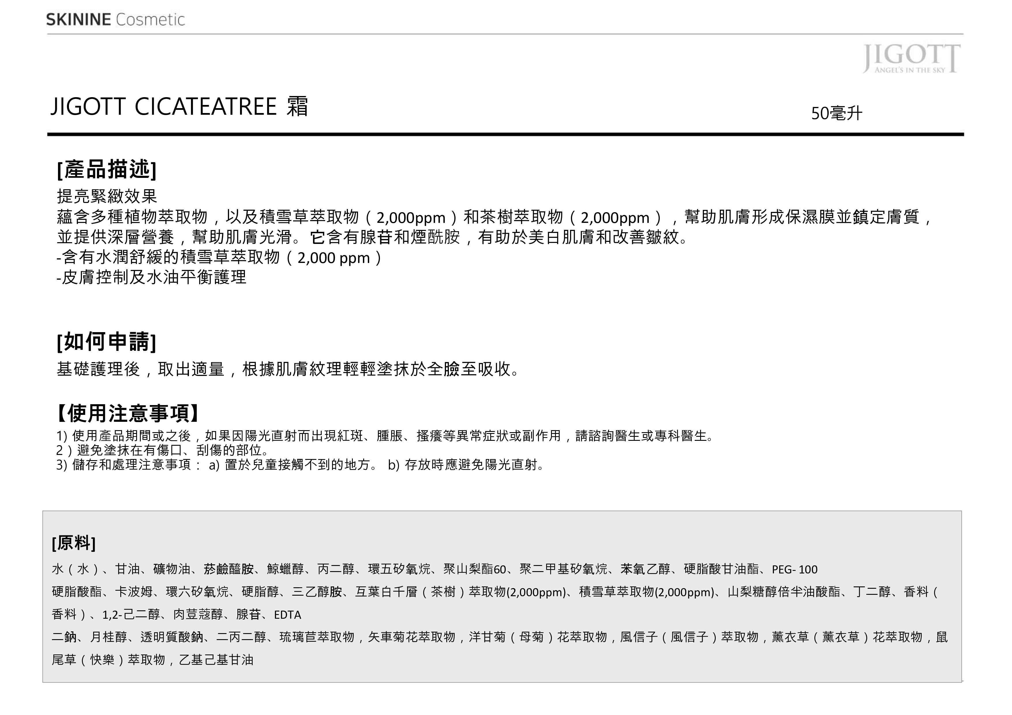 Centella asiatica extract (2,000 ppm) helps nourish and soothe skin, and tea tree extract (2,000 ppm) helps smooth skin texture and helps to manage clear skin texture by containing various vegetable extracts. It contains adenosine and niacinamide, which helps skin brightening and wrinkle improvement