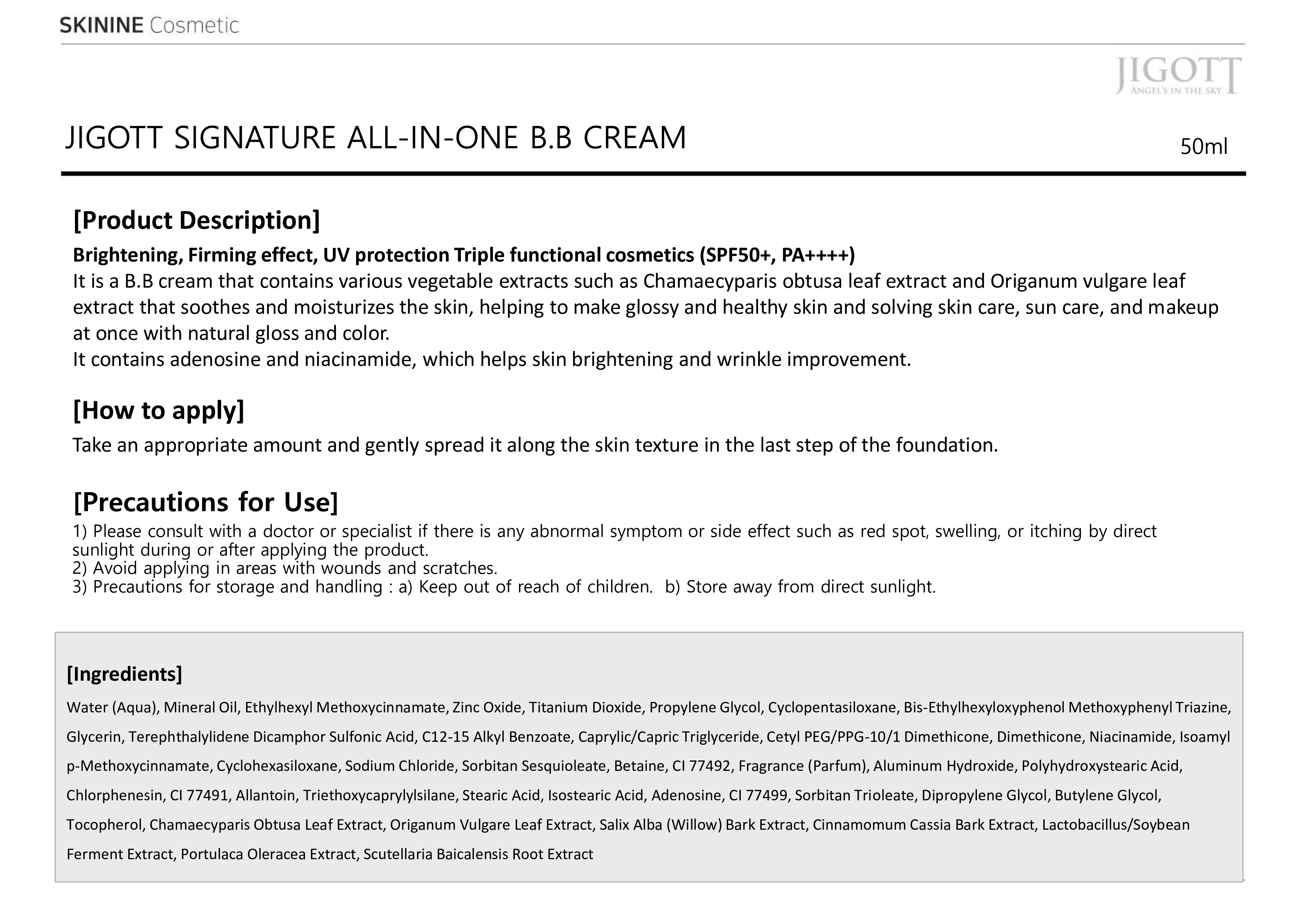 It is a B.B cream that contains various vegetable extracts such as Chamaecyparis obtusa leaf extract and Origanum vulgare leaf extract that soothes and moisturizes the skin, helping to make glossy and healthy ski