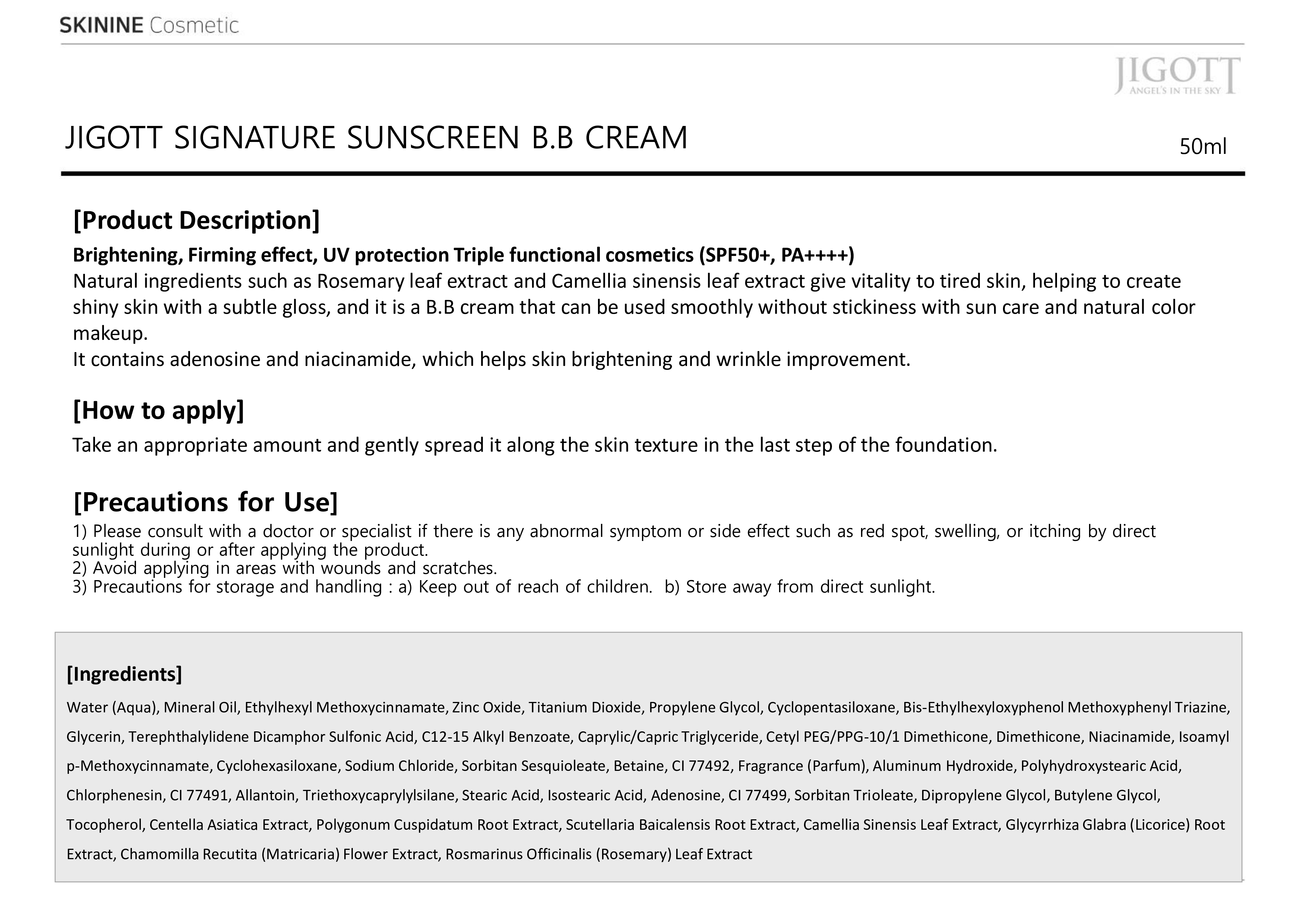 Brightening, Firming effect, UV protection Triple functional cosmetics (SPF50+, PA++++)