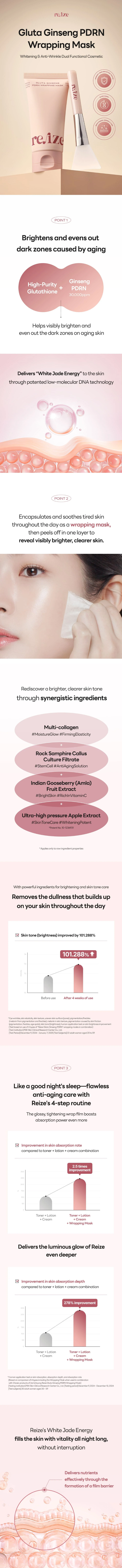 Reveal radiant, youthful skin with Re.Ize Gluta Ginseng PDRN Wrapping Mask — a powerful blend that brightens, repairs, and deeply hydrates in just one treatment.