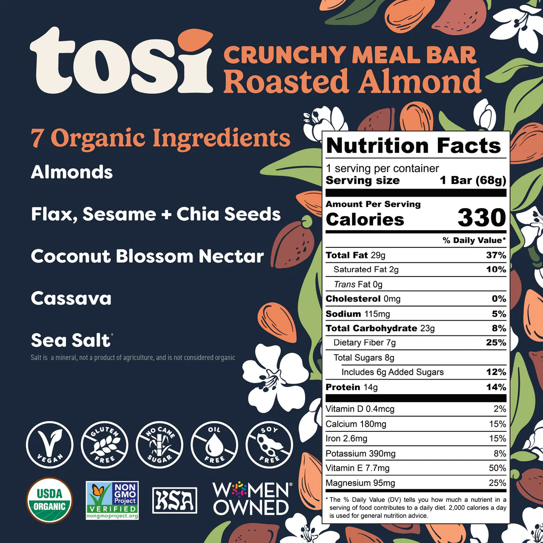Tosi Bar - Roasted Almond (organic, vegan, sugar free, gluten free, oil free, Non-GMO)