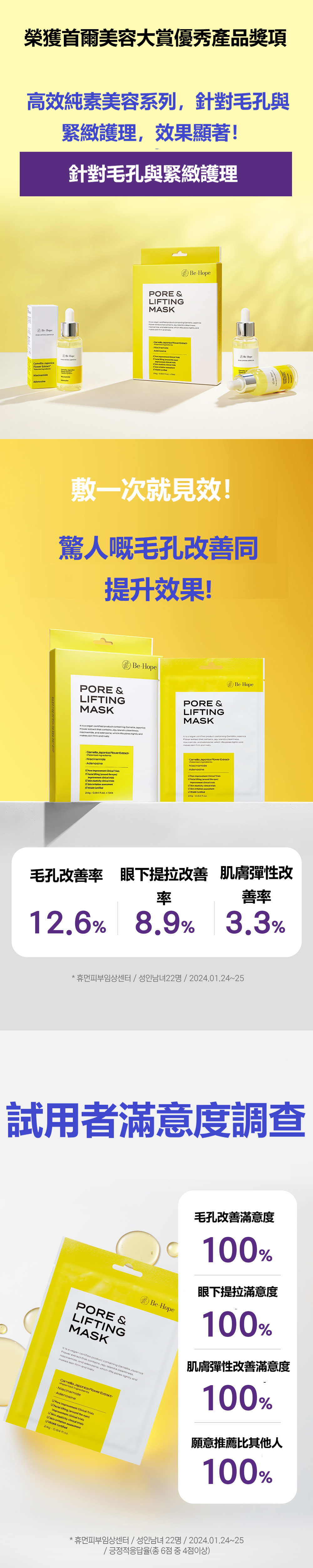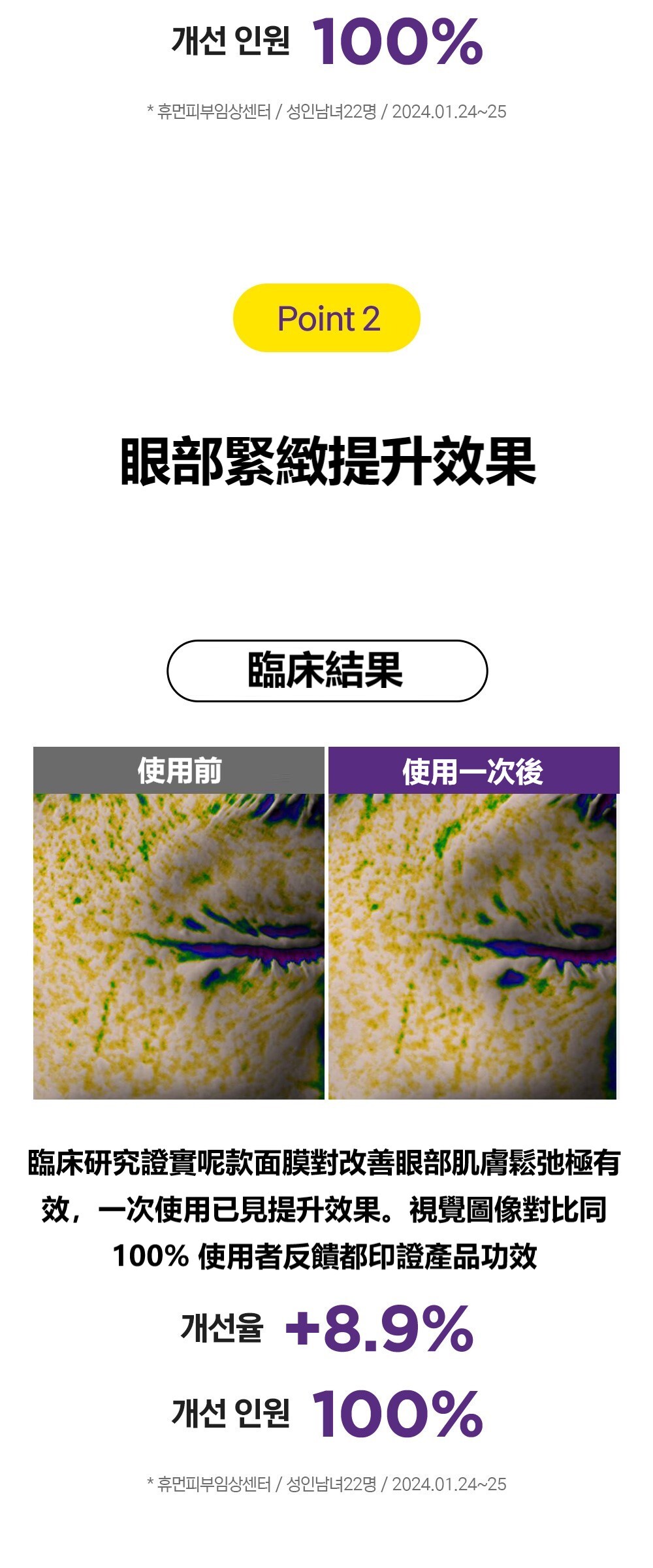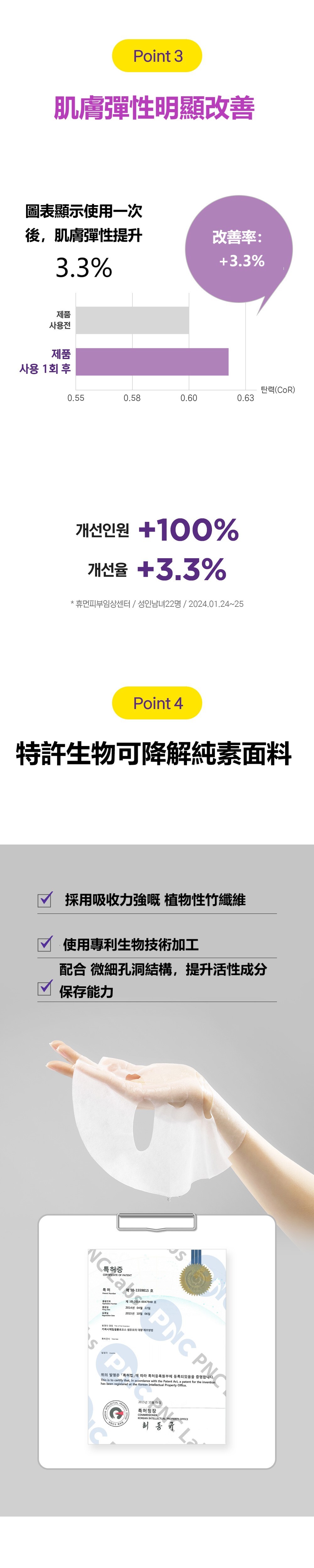 採用特許面料,完全注入安瓶精華,只需敷 20 分鐘,即可收細毛孔、回復彈性。係急救級緊緻護膚面膜