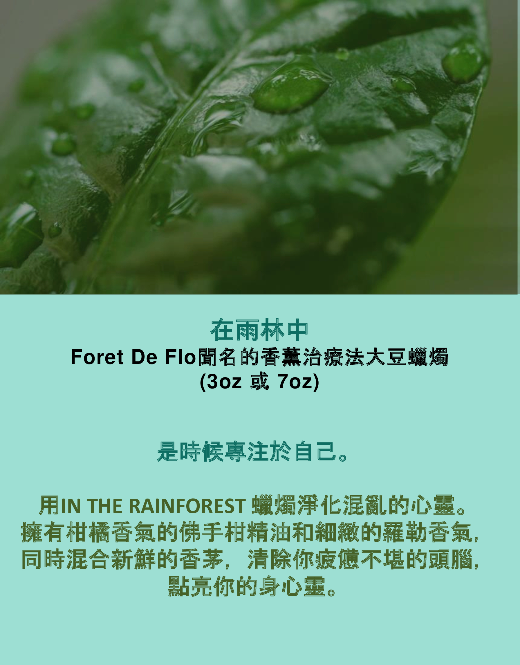 Foret De Flo - 雨林- 精油手工製作大豆蠟燭 85g (蠟燭燃燒時間持續30-35小時)_ (11.11)