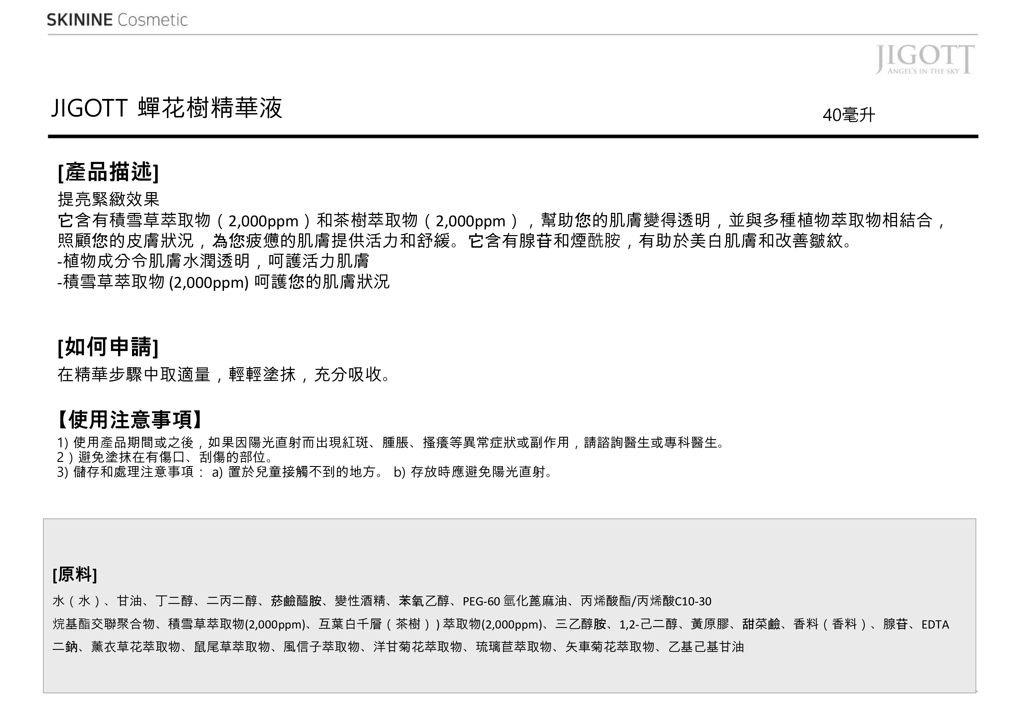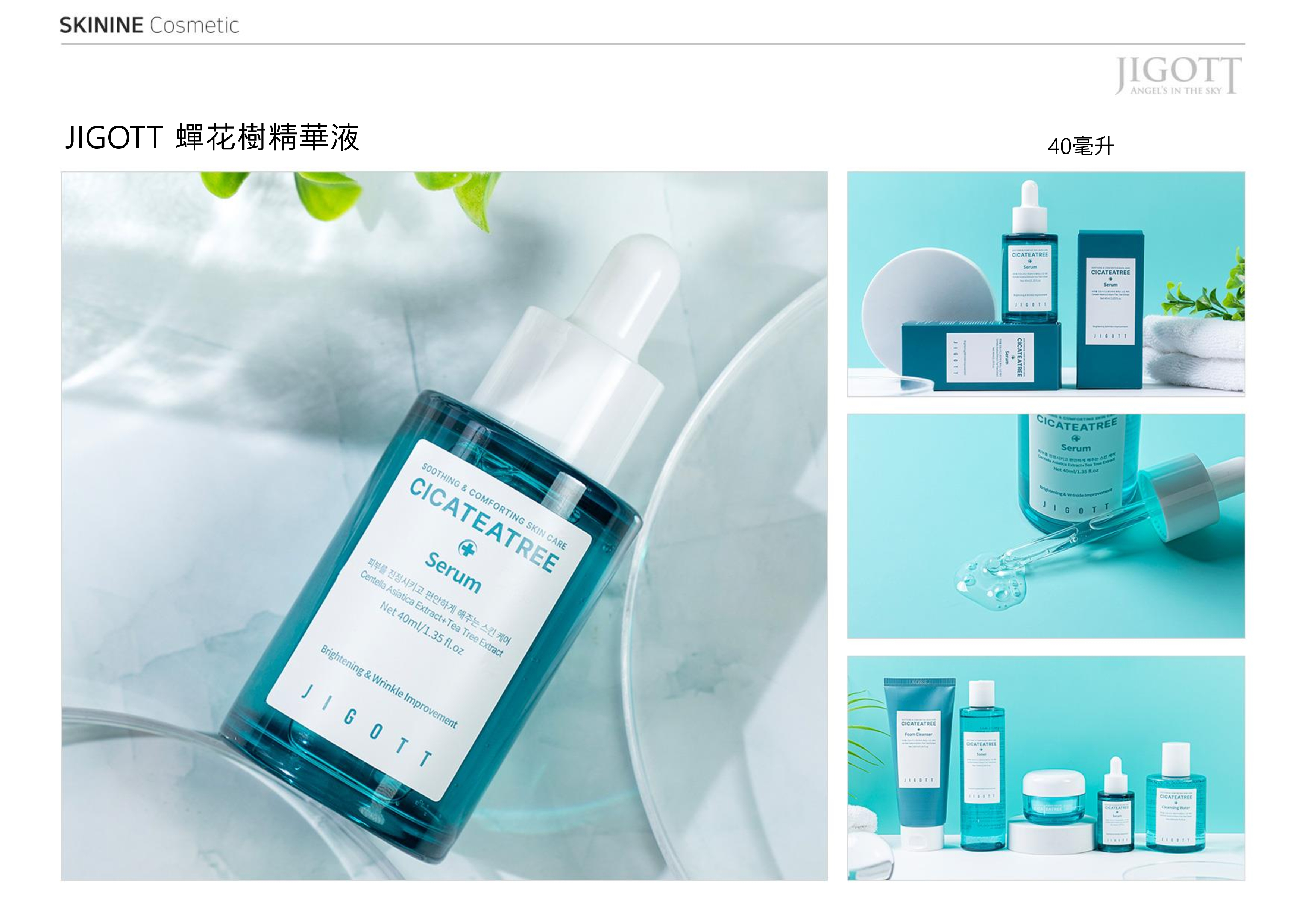 積雪草提取物(2,000 ppm)有助於滋養和舒緩肌膚,茶樹提取物(2,000 ppm)有助於平滑肌膚質感,並通過含有各種植物提取物來幫助管理清晰的肌膚質感。它含有腺苷和煙酰胺,有助於美白肌膚和改善皺紋。