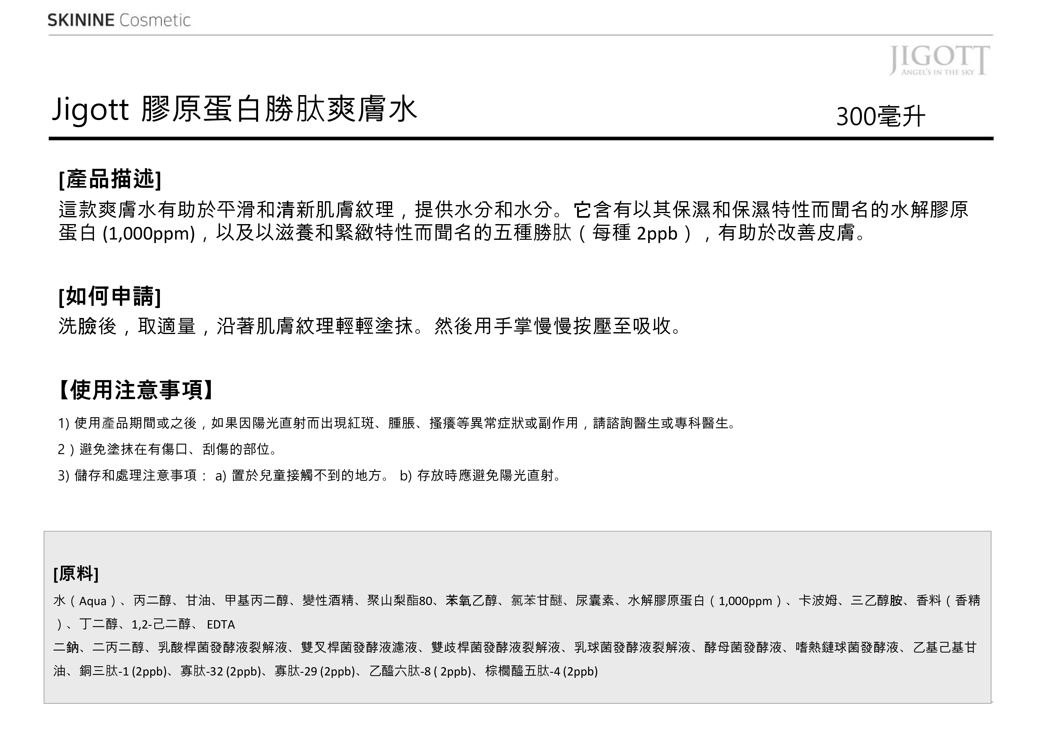 這款爽膚水有助於平滑和清新肌膚質感,提供水分和保濕。它含有水解膠原蛋白(1,000ppm),以其保濕和補水特性而聞名,還含有五種肽(每種2ppb),以其滋養和緊緻特性而聞名,有助於改善肌膚。