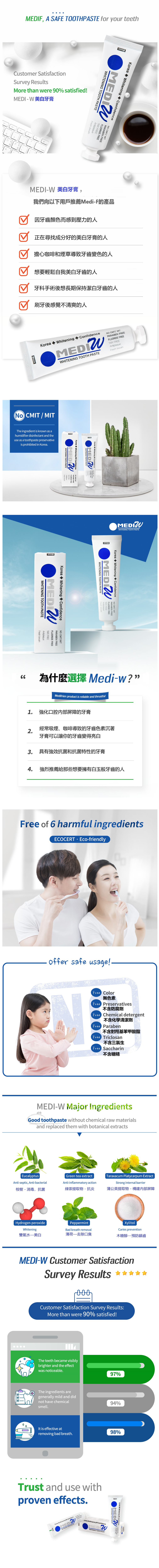 Medi-f 牙膏可以美白牙齒並預防蛀牙。 每天刷牙3次即可輕鬆長牙。 您可以自豪地展示您美麗而耀眼的笑容。