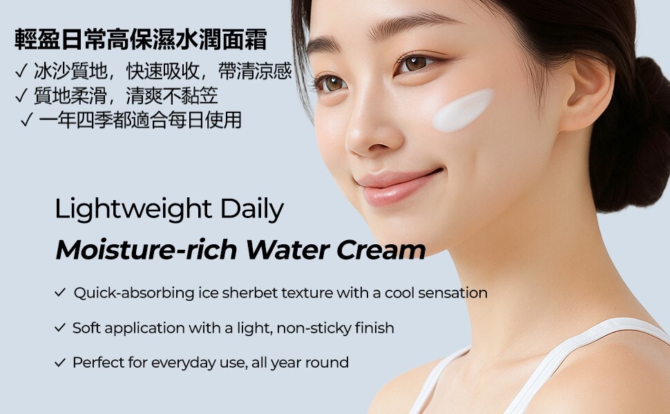 清爽保濕面霜,深層補水、質地柔滑,令肌膚水潤透亮。適合每日使用,任何膚質都啱用。